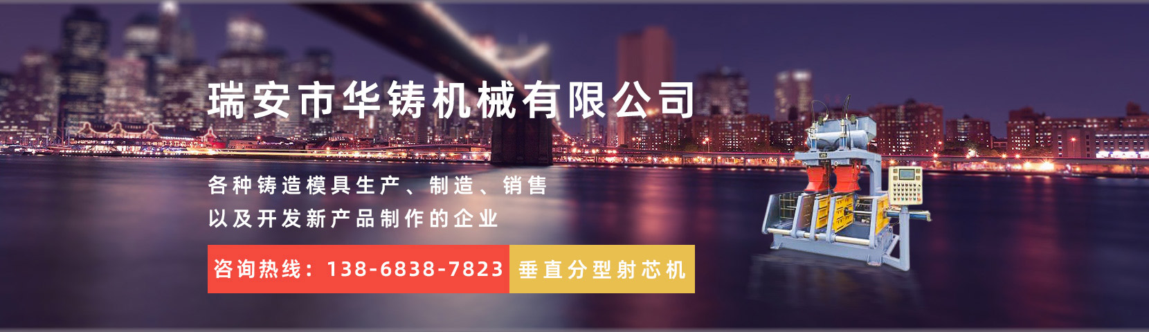 瑞安市華鑄機(jī)械有限公司,創(chuàng)建于2014年,位于經(jīng)濟(jì)發(fā)達(dá)的機(jī)械制造基地——溫州。本公司是一家致力于全自動(dòng)重力澆鑄機(jī)、射芯機(jī)殼芯機(jī)、覆膜砂設(shè)備、各種鑄造模具生產(chǎn)、制造、銷售以及開(kāi)發(fā)新產(chǎn)品制作的企業(yè)。